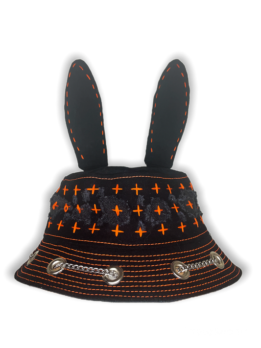 Black and Orange Sashiko Horn Hat 1of1